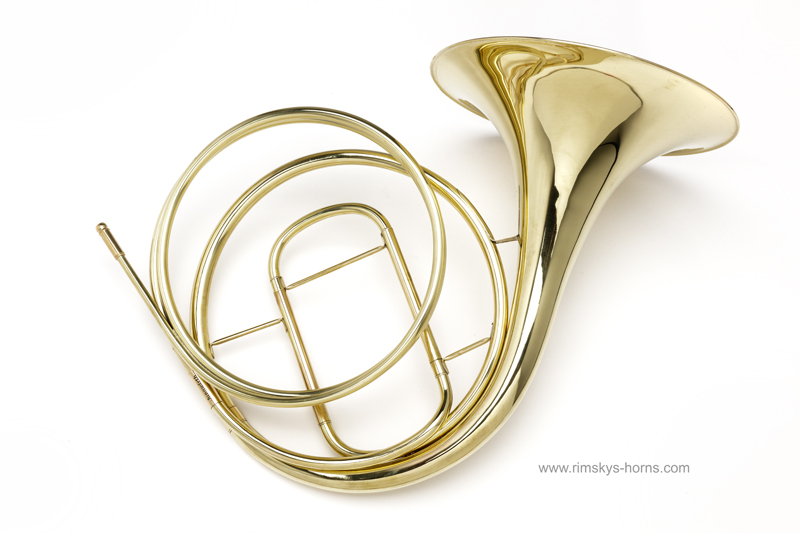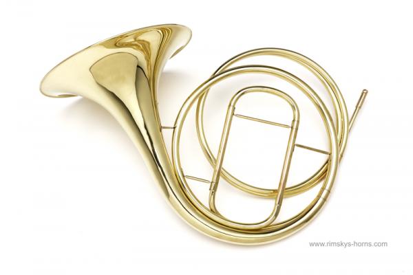 A.Jungwirth Natuurhoorn. model Lausmann. Messing, vaste beker, ongelakt, complete bogenset incl. Gig Bag en bogentas