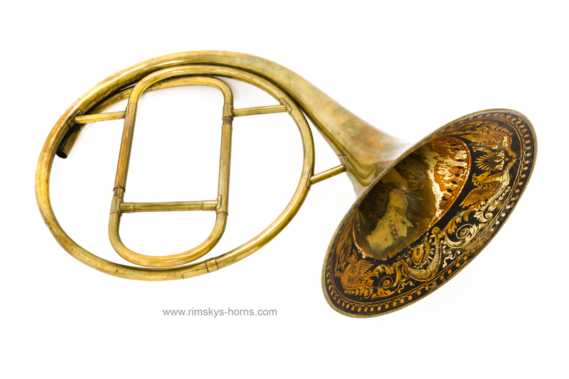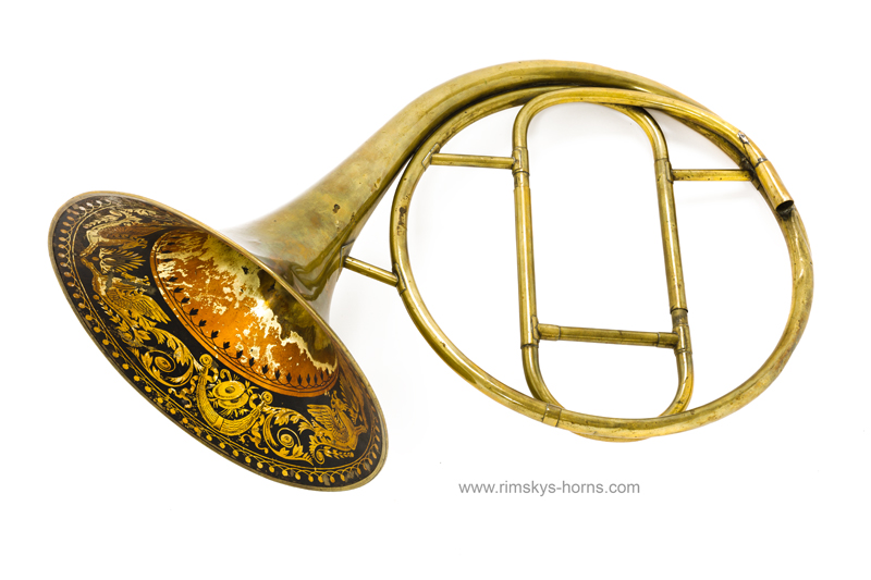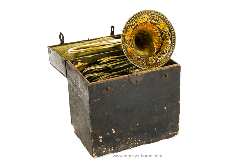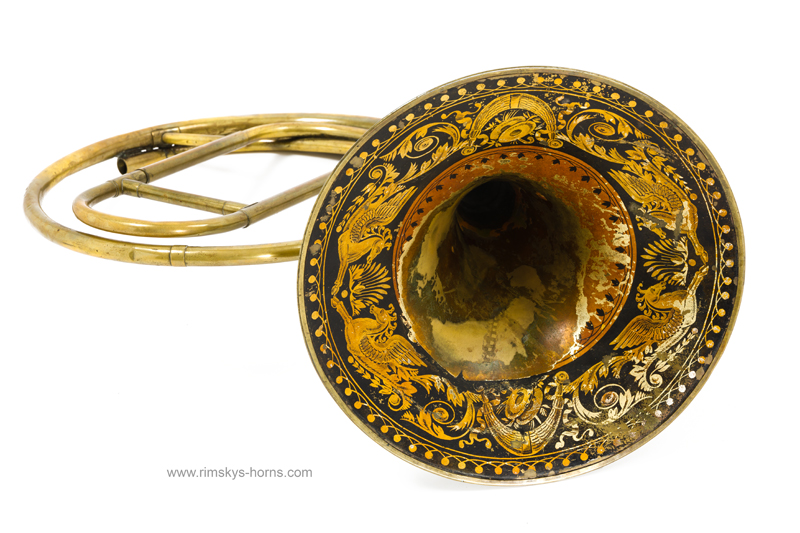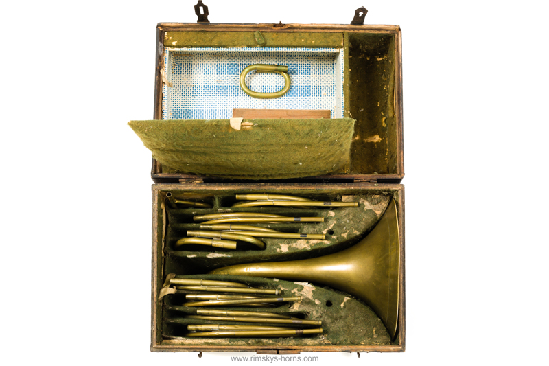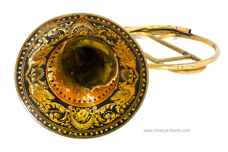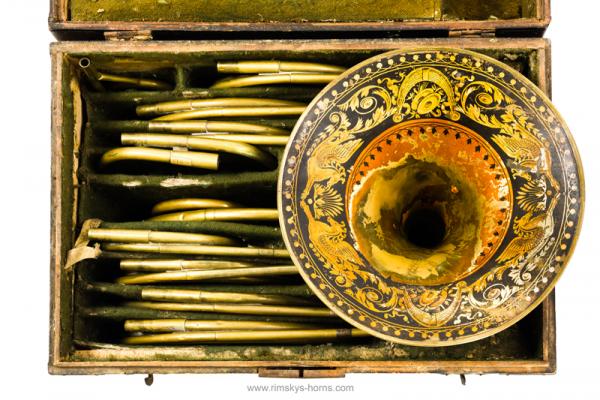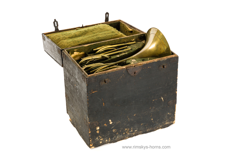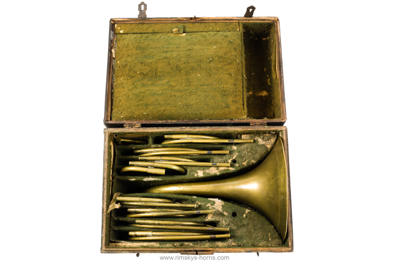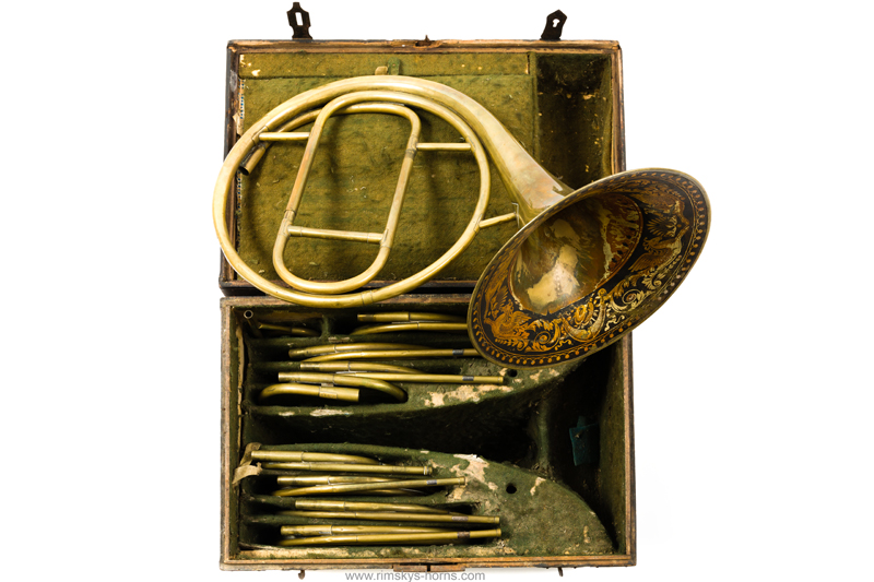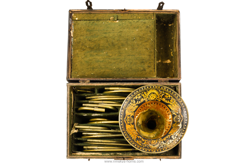 s Frère Rue de Caire à Paris (F), ca 1825: Cor d’Orchestre met mooi beschilderde beker, compleet met alle beugels en Originele koffer.