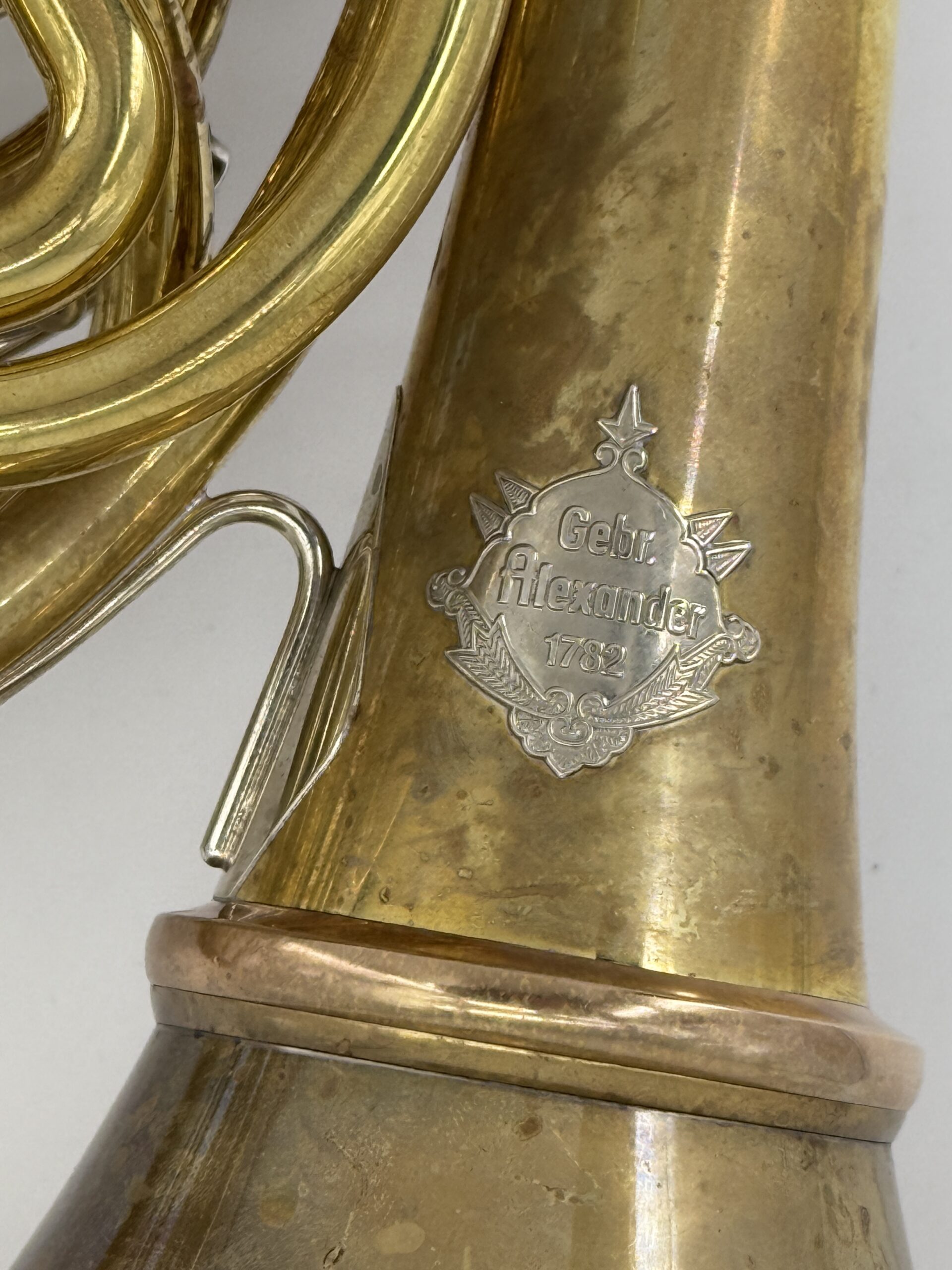 Gebr.Alexander 102 B/compensatie F : Messing, afschroefbare beker, extra waterklepje op laag F hoorn, ongelakt inclusief Gig Bag. serienummer #20XXX. ! 1 jaar jong !