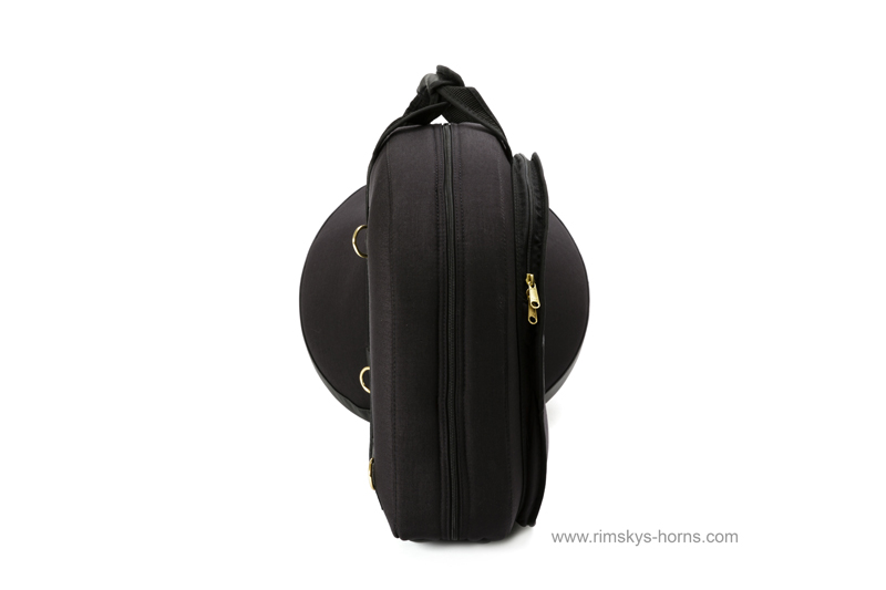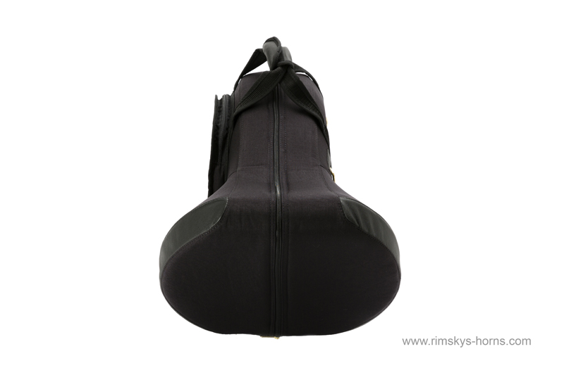 Gebr.Alexander Greenline Gig Bag: Zwart Nylon met Leder accent. Interieur heeft goede padding. Normale Corpus model 103, vaste beker. Inclusief 2 rugbanden.