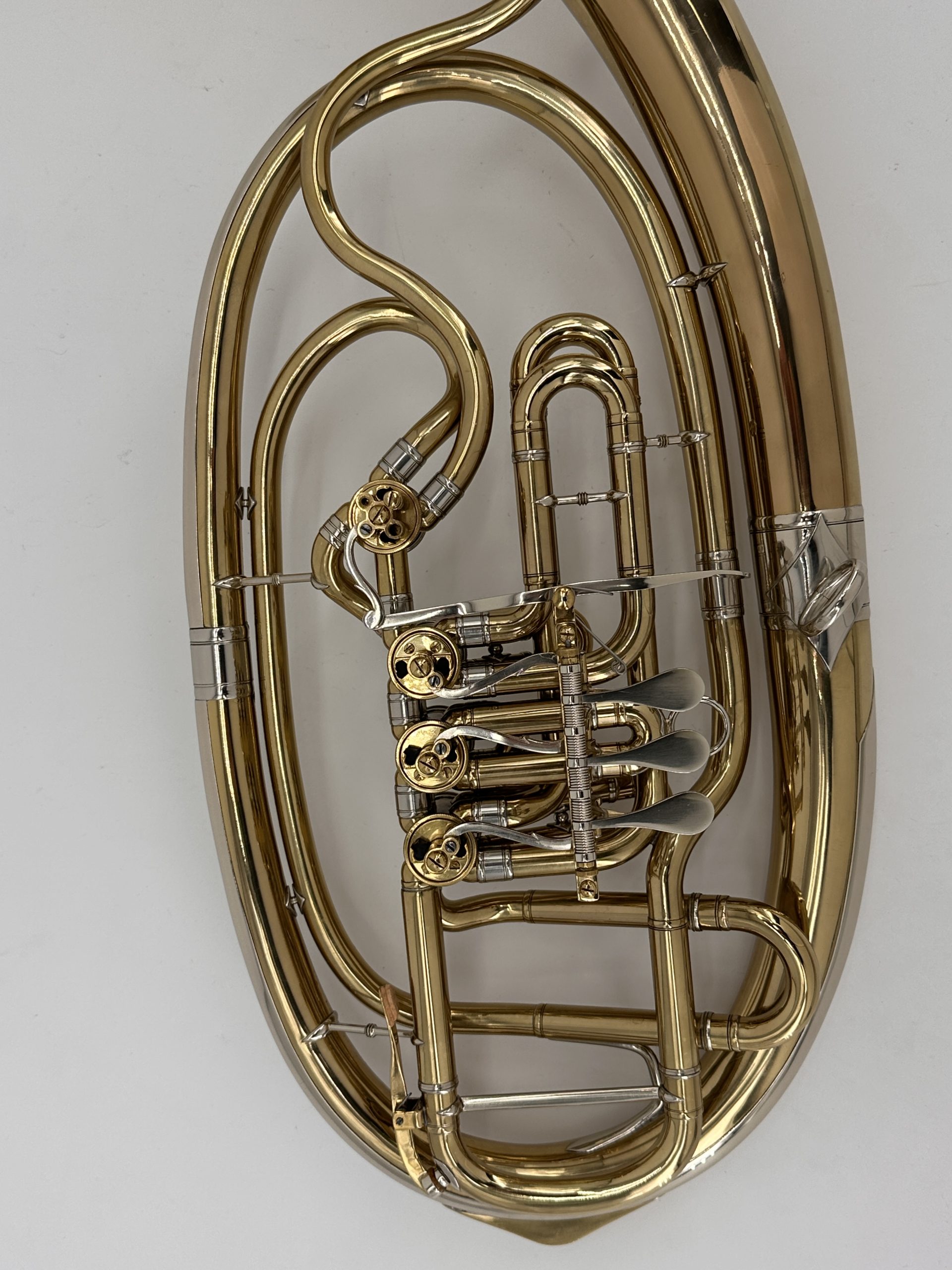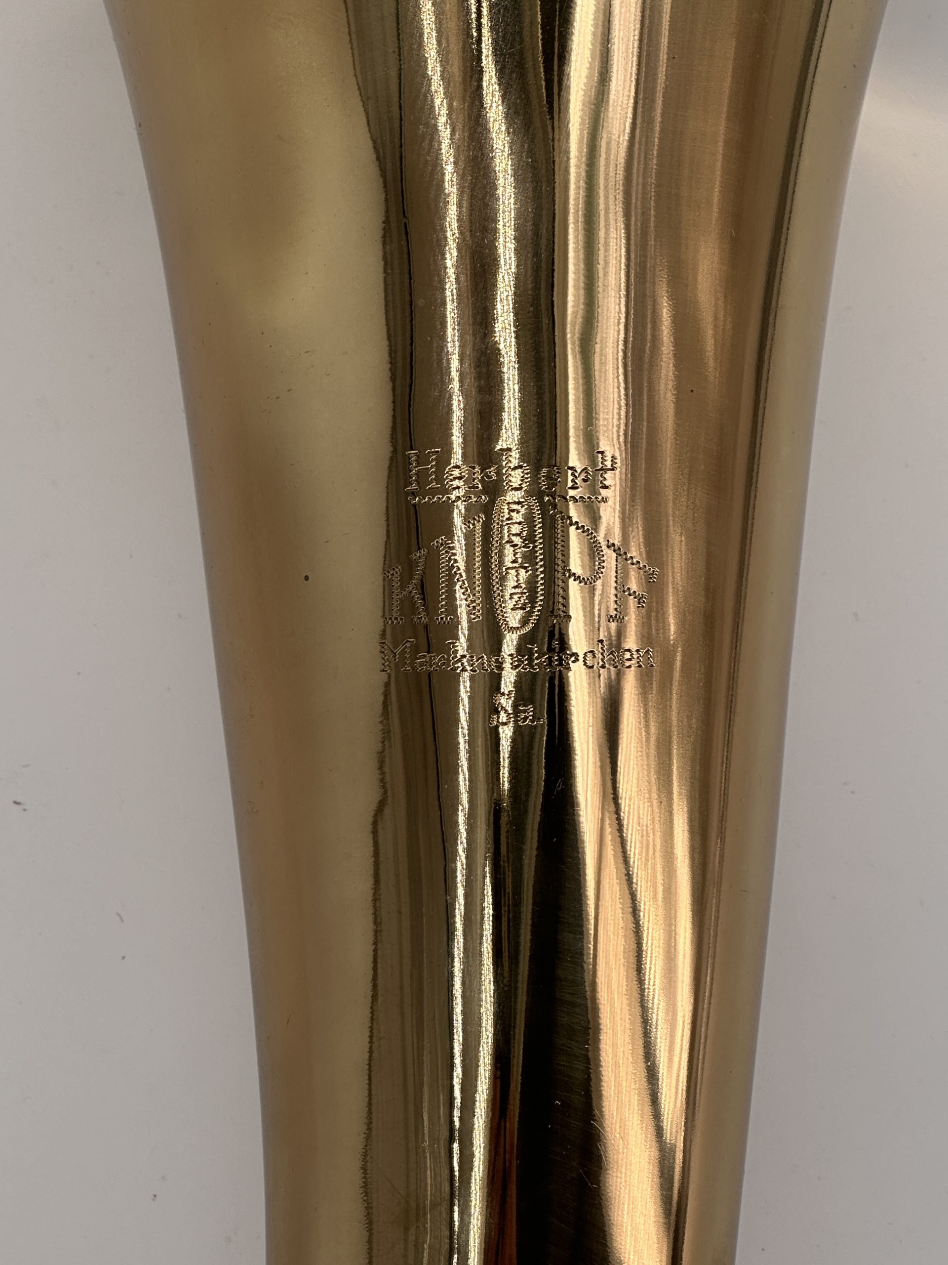 Herbert Fritz Knopf 22 B/ compensatie F dubbele Wagnertuba : Messing, vaste beker, gelakt (99%) inclusief originele koffer met beschermhoes.