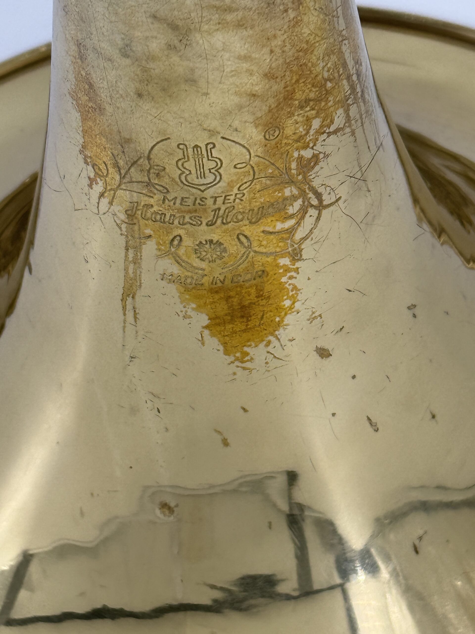 Hoyer 706 enkel Bes/ingebouwde F : messing, vaste beker, stopventiel, ingebouwde F-verlenging, gelakt (85%) inclusief Gig Bag.