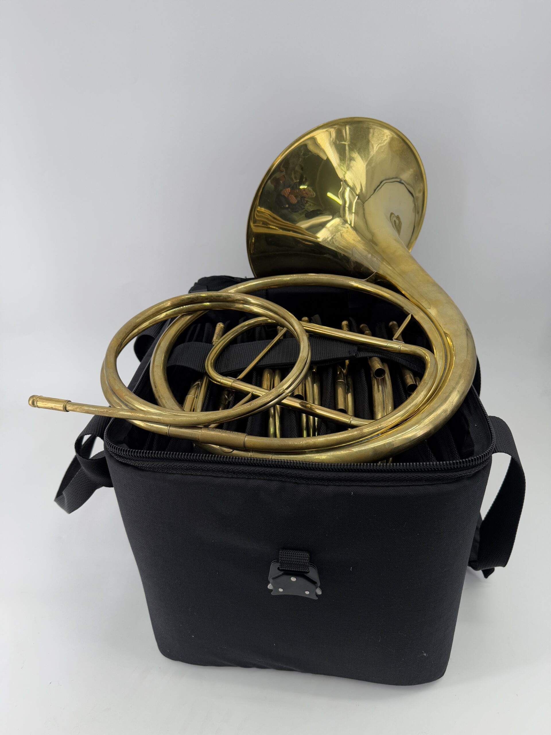 Jungwirth Natuurhoorn model Lausmann – compleet : Messing, vaste binnenin zwart geverfde beker, ongelakt, compete bogenset inclusief bijbehorende Gig Bags.