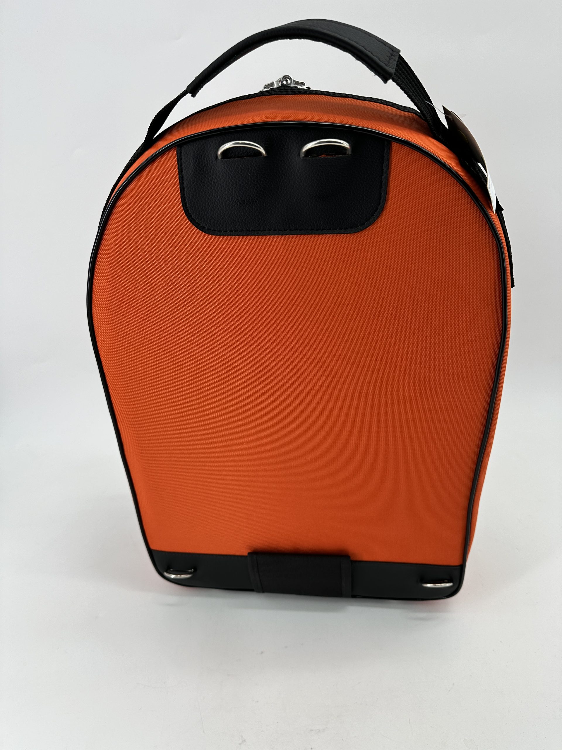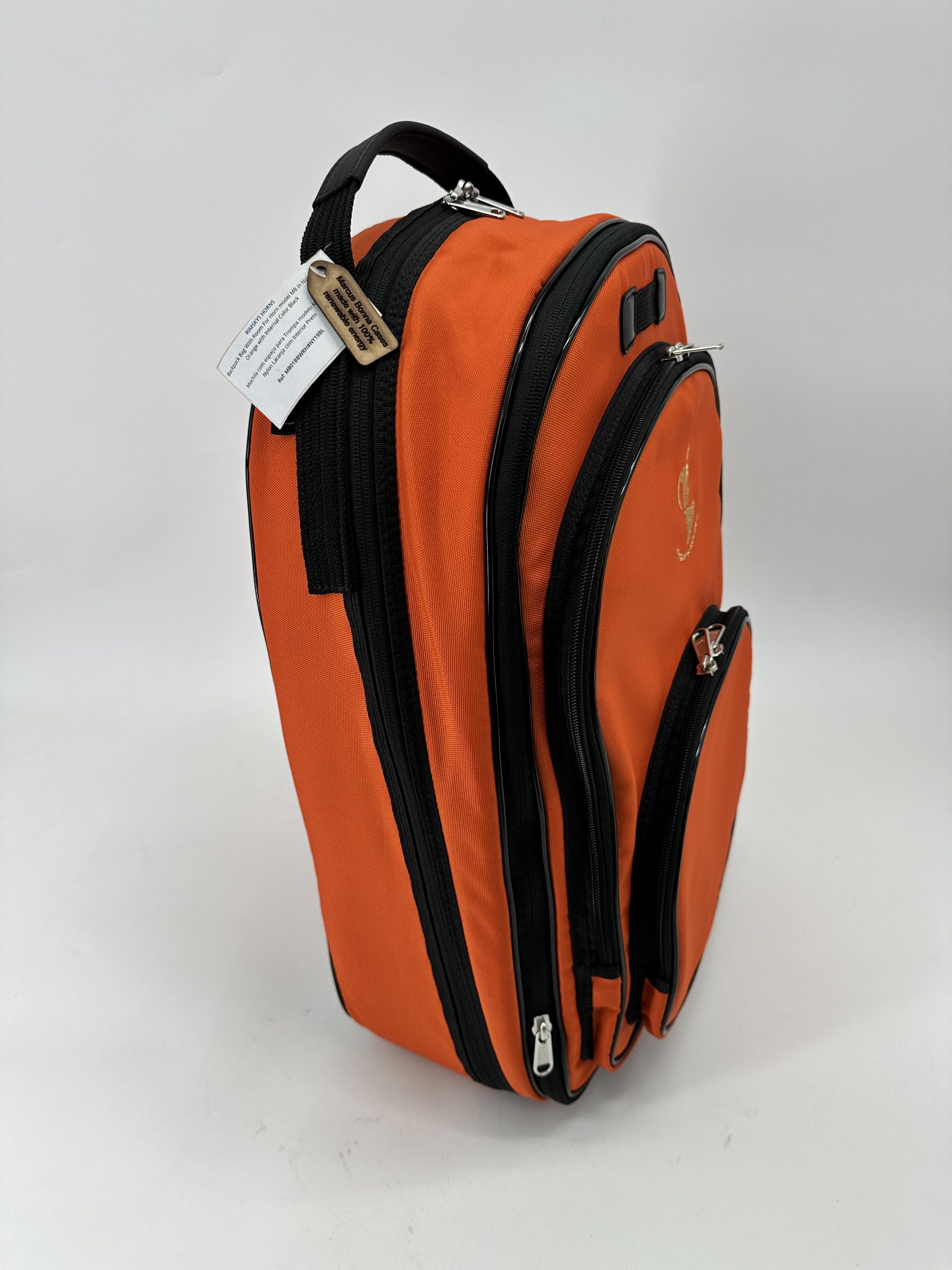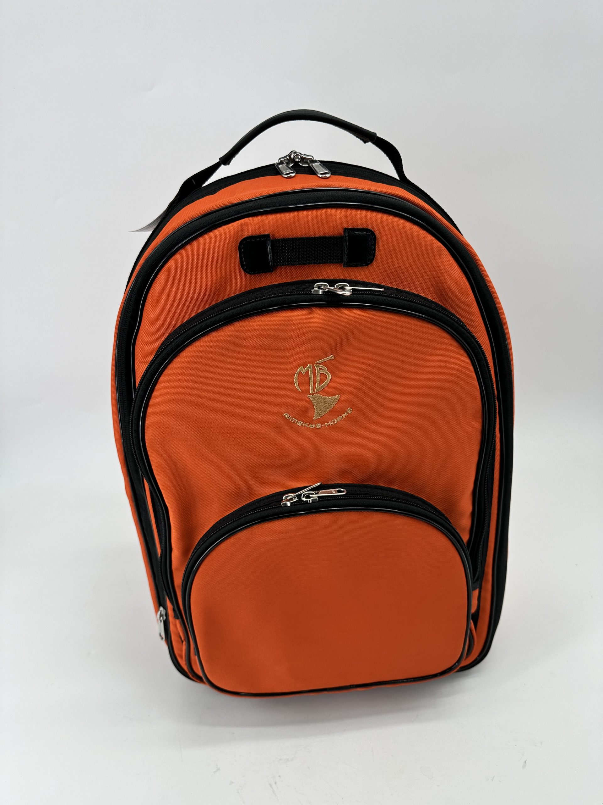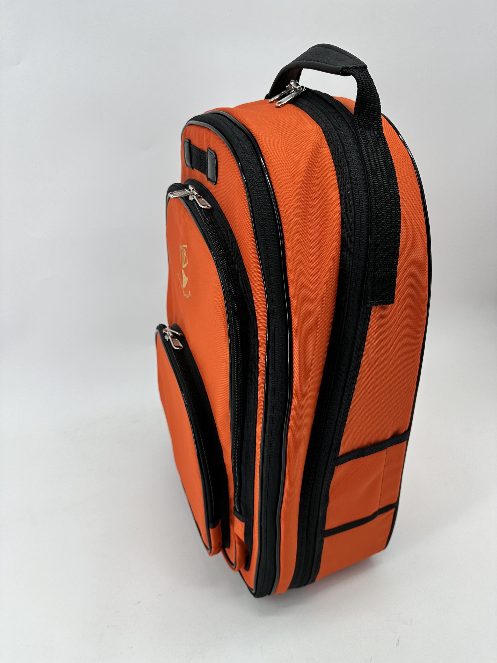 This backpack fits a medium sized and some large sized detachable french horns.Besides the instrument there is also room inside for a mute and some pieces of clothes.Additional to that, there are two external front pockets providing more storage space.We do not recommend filling the backpack bag to its maximum. It may damage the case and/or damage the instrument.It’s possible to increase the size of the backpack by 5 cm using the expansion system.The waist belt provides a more comfortable weight distribution across your body.This case design is very beneficial for short trips.