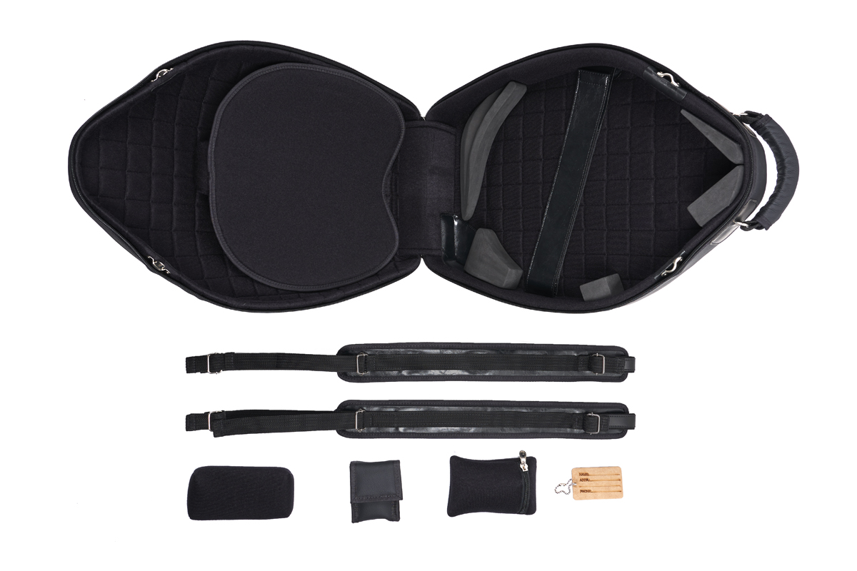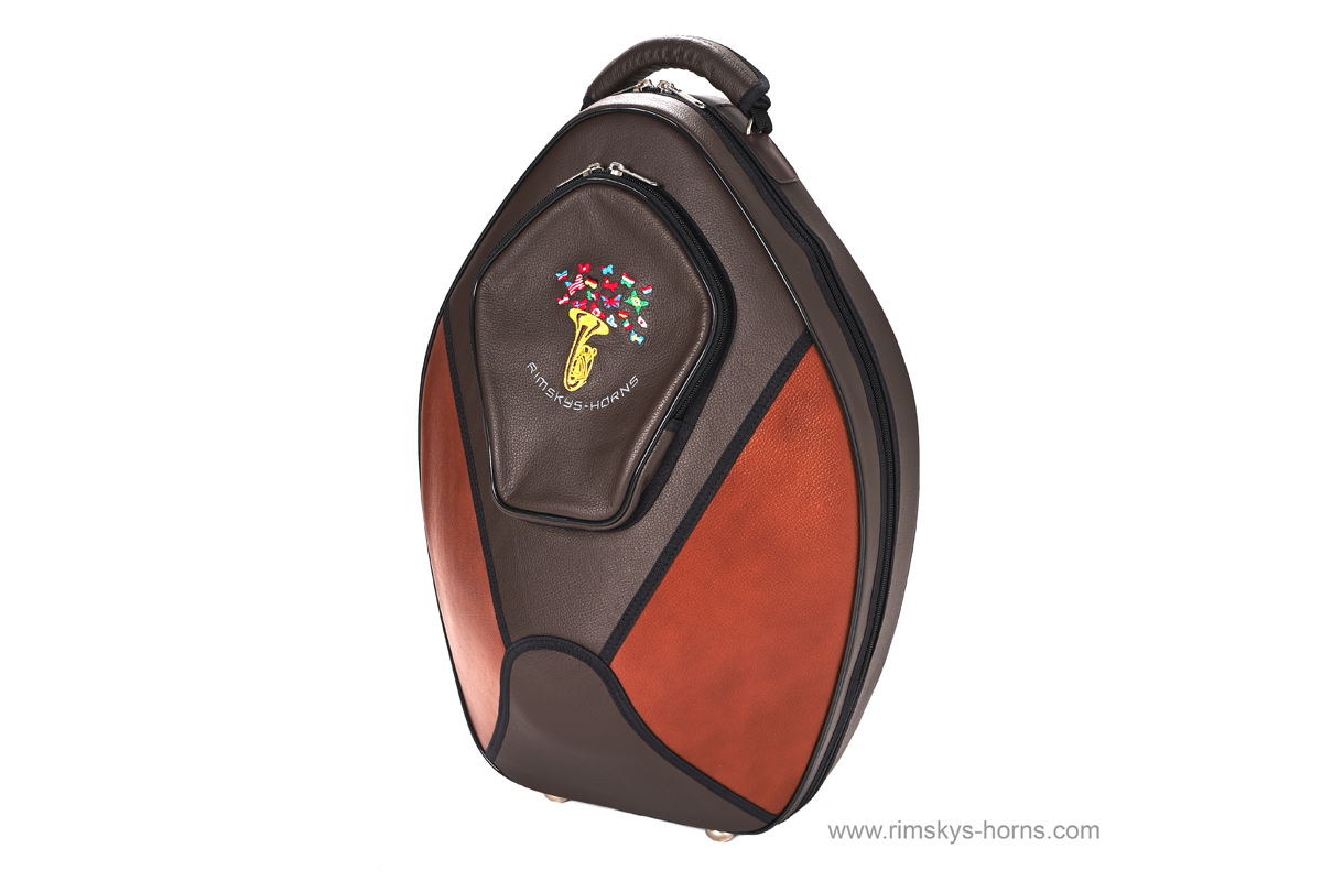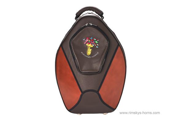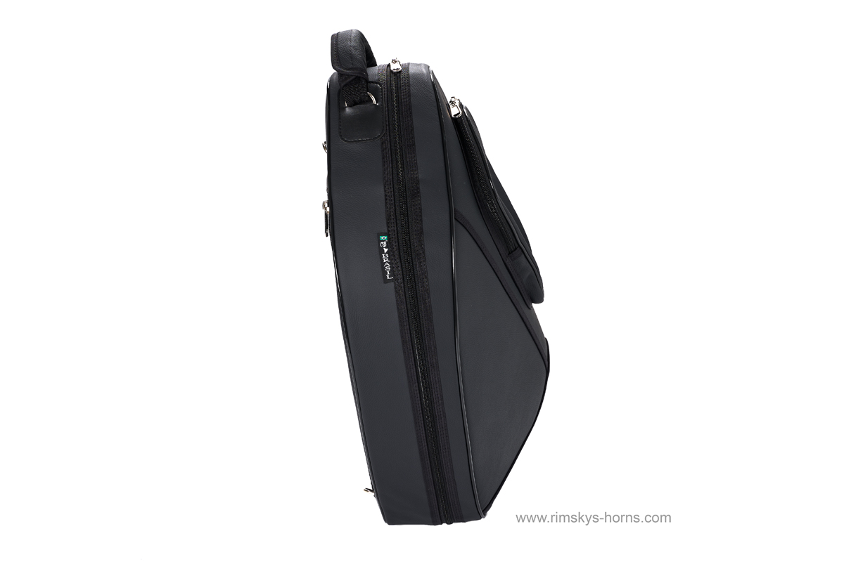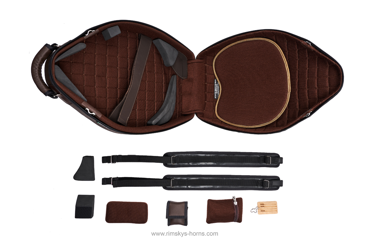 MB4 -Baby-1-Bruin of Zwart Leder ( Flight case): De Marcus Bonna MB-4 Gig Bag is perfect voor de hoornist die vaak vliegt. Het bladmuziekvak is intern. De MB4 van hoogwaardig bruin leder omvat twee rugzakriemen, een mondstuktasje voor drie mondstukken en een vast frontvak voor spullen. MB4-1 is Alexander 103 (kleine) Corpus.