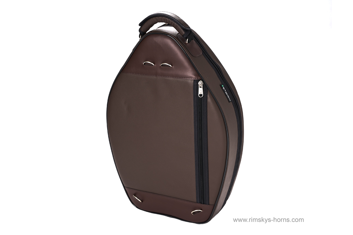 MB4 -Baby-2-Bruin of Zwart Leder ( Flight case): De Marcus Bonna MB-4 Gig Bag is perfect voor de hoornist die vaak vliegt. Het bladmuziekvak is intern. De MB4 van hoogwaardig bruin leder omvat twee rugzakriemen, een mondstuktasje voor drie mondstukken en een vast frontvak voor spullen. MB4-2 is Alexander 1103 (grote) Corpus.
