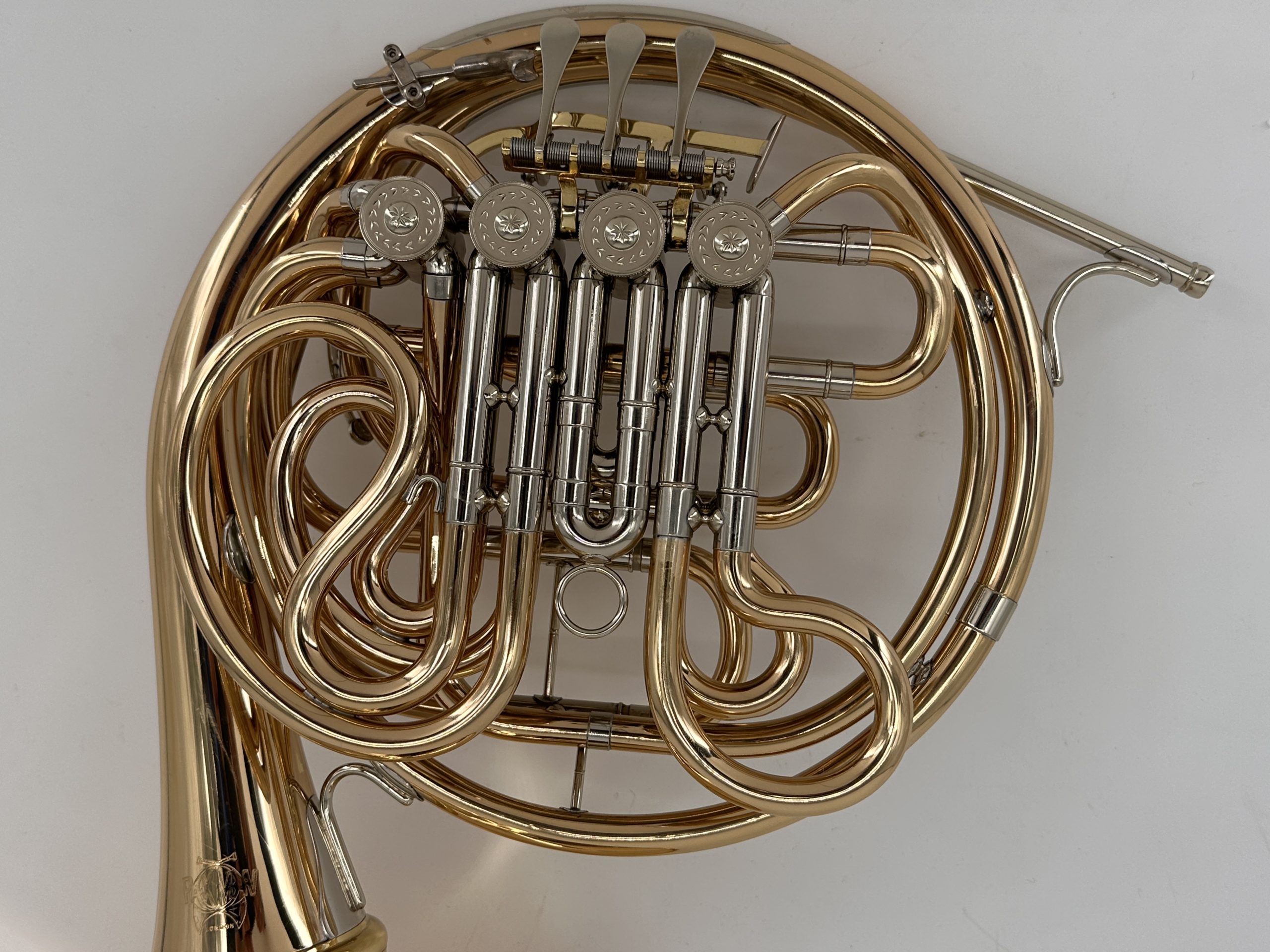 Paxman 23M B/F : Goldmessing, afschroefbare beker, verstelbare pinkhaak, gelakt ( 98%) inclusief Gig Bag. ! Rechtshandig! Ex instrument Paul van Zelm.