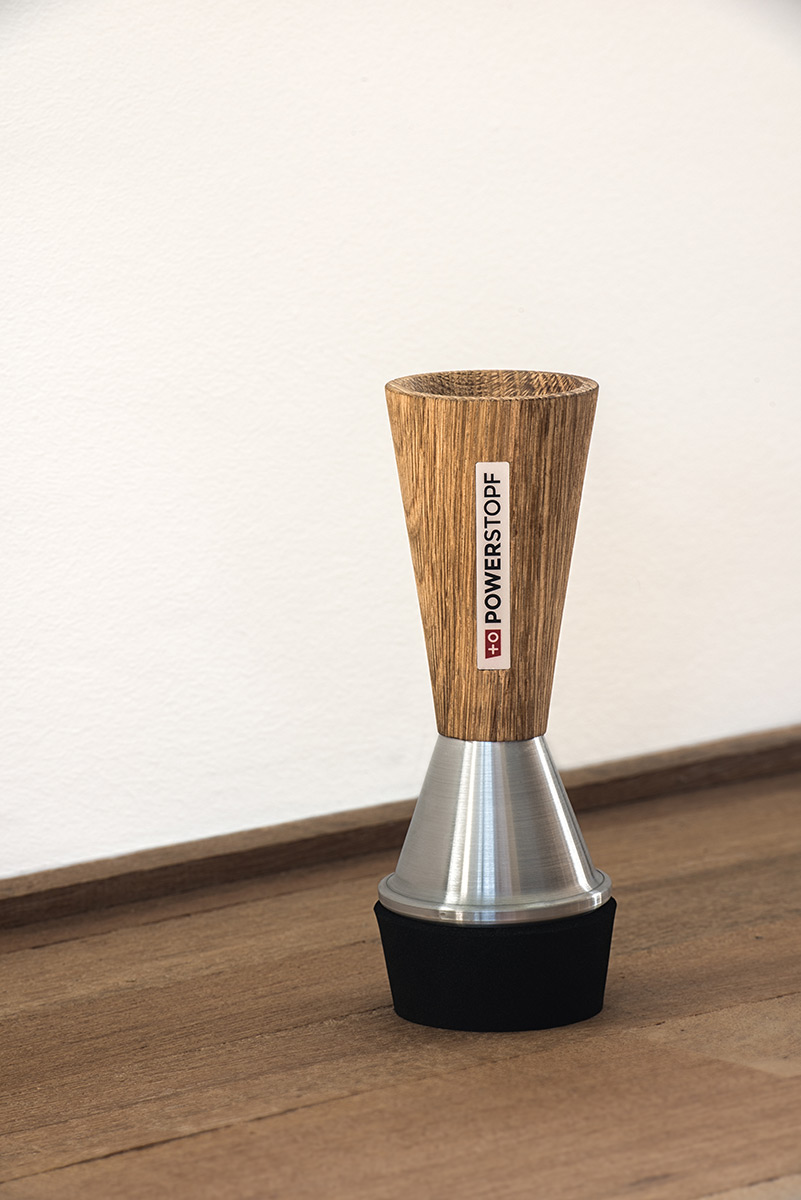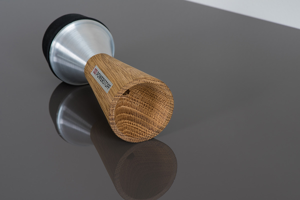PowerStopf stopping mute : Aluminium: Aluminium-Hout/wood, makkelijk hanteerbaar/ easy grip, including 3 straps.