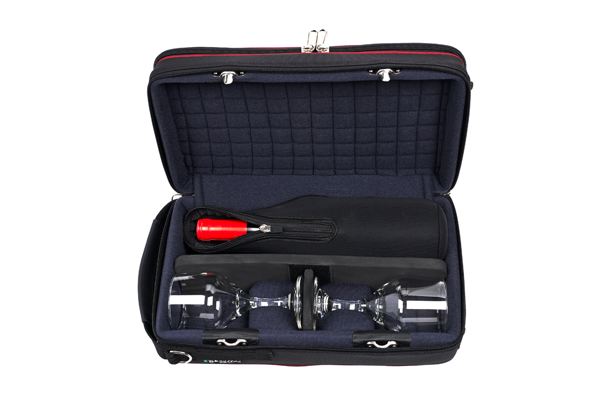 Er is een mogelijkheid om de binnenkant van de behuizing te vervangen om nog een fles in plaats van glazen te vervoeren.