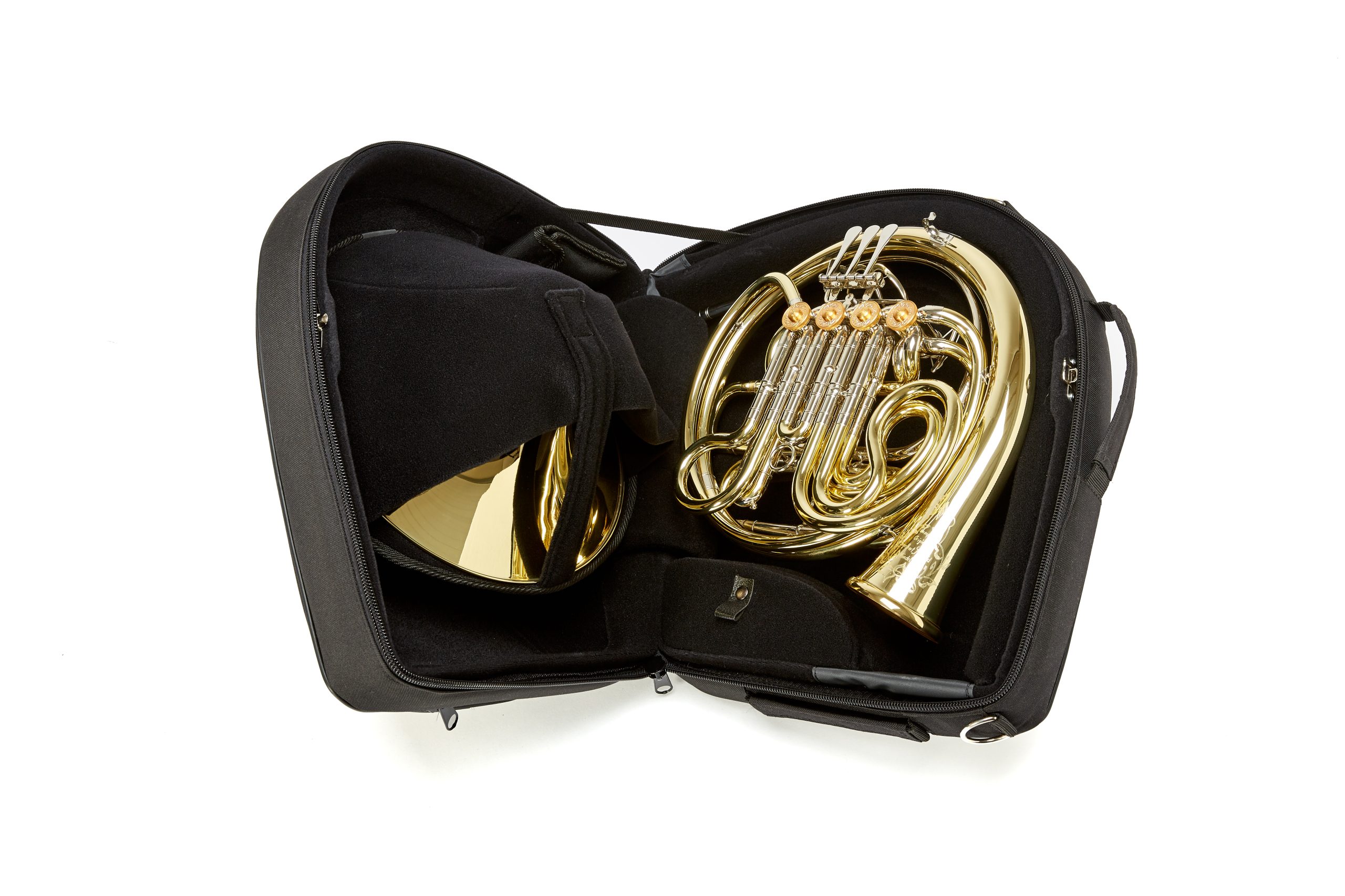 Rimskys-Horns Gigbag-Zwart, ruimte voor Demper, incl.mondstuktasje en 3 draagbanden. Noot: Hoorn niet Inclusief ! Leverbaar met Gebr.Alexander logo
